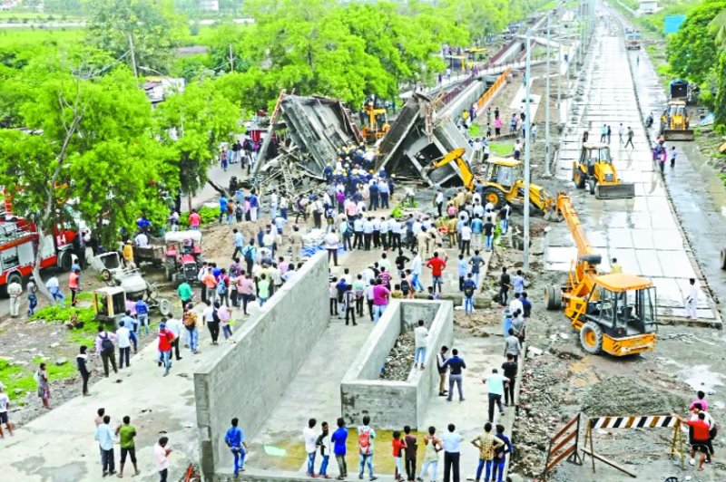 सूरत।वेसू कैनाल रोड पर मनपा के कैनाल ब्यूटीफिकेशन कार्य के दौरान गुरुवार सुबह निर्माणाधीन एंट्री गेट का भारी-भरकम स्लैब धराशायी हो जाने से ढाई साल की एक बच्ची की मौत हो गई, जबकि नौ श्रमिक सामान्य रूप से घायल हो गए। हादसे के बाद वहां अफरा-तफरी मच गई और भारी भीड़ जमा हो गई। दमकलकर्मियों ने मलबा हटाकर बच्ची का शव बाहर निकाला।