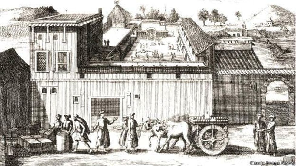 ईस्ट इंडिया कंपनी ने 1646 तक सूरत समेत भारत के समुद्रतटीय इलाकों के बड़े शहरों में अलग-अलग सामानों को बनाने के लिए 23 फैक्ट्रियां लगाई थीं। इन फैक्ट्रियों में भारत से ही कच्चा माल लेकर उत्पाद तैयार होते थे। 1689 में सूरत की फैक्ट्री का दौरा करने वाले अंग्रेज़ पादरी जॉन ओविंगटन ने अपने संस्मरण में यहां की कैंटीन के खाने की तारीफ की है।