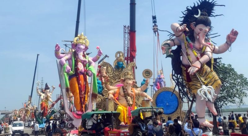 GANESH VISARJAN : बड़ी प्रतिमाओं के विसर्जन में हुई परेशानी