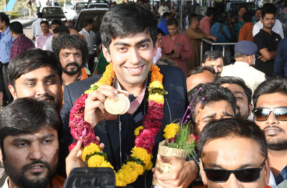 आस्ट्रेलिया के शहर गोल्डकोस्ट में हुए कॉमनवेल्थ गेम्स में भारत को एक स्वर्ण और एक कांस्य दिलाने वाला सूरत का स्टार टेबल टेनिस खिलाड़ी हरमीत देसाई बुधवार को सूरत पहुंचा। एयरपोर्ट पर खिलाडिय़ों, आम लोगों, जनप्रतिनिधियों और उसके प्रशंसकों ने उसका जोरदार स्वागत किया। हवाई अड्डे पर आए युवाओं ने हरमीत पर पुष्प बरसाए। उसके स्वागत के लिए बड़ी संख्या में बच्चे भी पहुंचे थे। उन्होंने अपने हाथों में वेलकम हरमीत लिखी तख्तियां पकड़ी हुई थीं। अपने लाड़ले की सफलता पर परिजनों की खुशी का ठिकाना नहीं था। मां ने उसे चूमकर प्यार जताया।