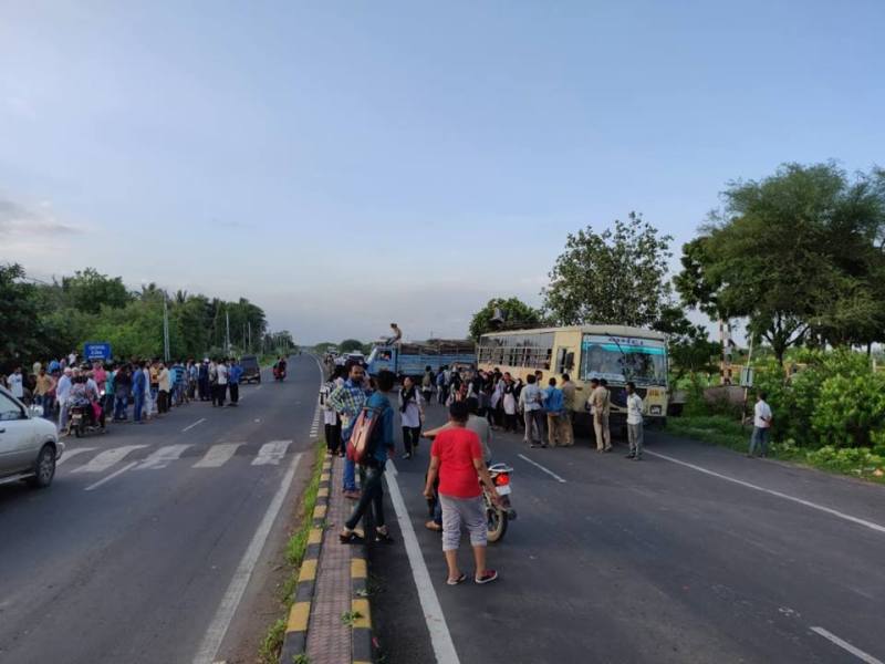 अनियमित बस संचालन से परेशान यात्रियों ने किया चक्काजाम