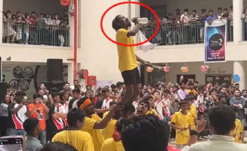 वीडियो में देखा जा सकता है कि युवा कॉलेज कैंपस में गोविंदा रे गाने पर मस्ती कर रहे हैं. इस बीच कुछ युवक पिरामिड आकार में एक-दूसरे के ऊपर खड़े हैं और एक युवक आग से करतब दिखा रहा है. युवक ने लौ जलाई जो उसके मुँह तक पहुँची और उसके चारों ओर लिपट गई। आग लगने पर लोगों में काफी चिल्लम चिल्ली मच गई।