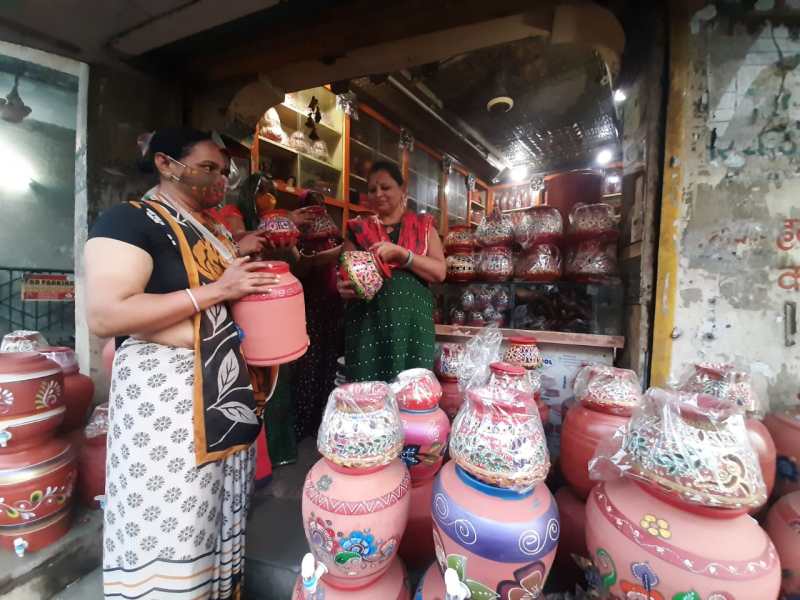परवत पाटिया क्षेत्र में मिट्टी के बरतन समेत अन्य सामग्री के विक्रेता विनोद प्रजापति ने बताया कि गतवर्ष मुंबई से पंद्रह सौ गरबा मंगवाए थे जबकि इस बार कोरोना की वजह से यह संख्या उन्होंने आधी ही रखी है। 50 से 500 रुपए तक के गरबा कलश वे रखते हैं, लेकिन इस बार कोरोना महामारी की वजह से गरबा कलश खरीदने में लोगों ने ज्यादा रुचि नहीं दिखाई है अन्यथा पहले बुकिंग भी होती थी।