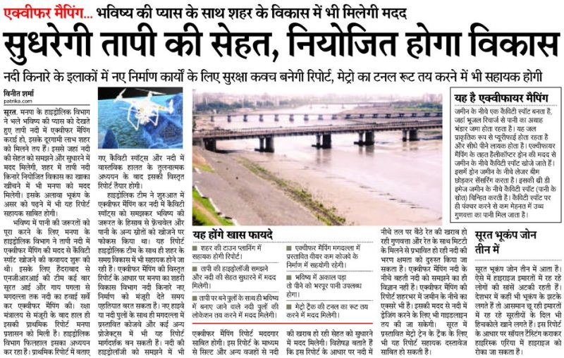 सूरत. भविष्य में पानी की जरूरत को देखते हुए मनपा के हाइड्रोलिक विभाग ने तापी नदी में एक्वीफर मैपिंग कराई थी, उसकी रिपोर्ट जारी हो गई है। अब एनजीआरआई की टीम मनपा प्रशासन को इसके फायदे समझाएगी। इसके लिए टीम 10 सितंबर को सूरत आ रही है।