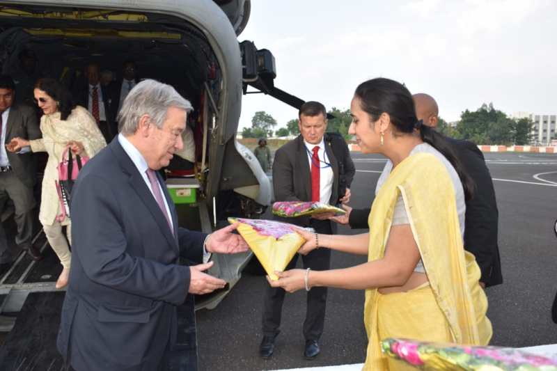 नर्मदा. संयुक्त राष्ट्र संघ के महासचिव एन्टोनियो गुटेरेस बुधवार को केवडिय़ा पहुंचे। भारतीय वायुसेना के विशेष हैलीकॉप्टर चिनूक से केवडिय़ा हैलीपेड पर उतरे यूएनओ महासचिव का स्वागत नर्मदा जिला कलक्टर श्वेता तेवतिया समेत अन्य प्रशासनिक अधिकारियों ने किया और बाद में गरबा व डांडिया रास के साथ परंपरागत तरीके से भी एंटोनियों गुटेरेस का स्वागत वहां किया गया।