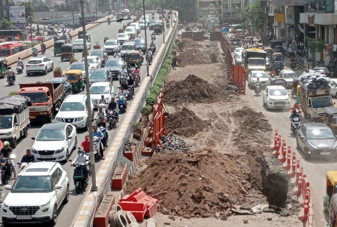 वराछा और भटार क्षेत्र में जारी मेट्रो रेल के कार्य यहां पर भी बैरिकट करने की वजह से आधी से भी कम सड़क का लोग उपयोग कर पा रहा है। खुदाई के कारण भी स़ड़के खस्ताहाल हो चुकी है, जिससे वाहन चालकों को परेशानी का सामना करना पड़ रहा है। वहीं, मानसून के दौरान यहां हालात और भी बिगड सकते हैं।