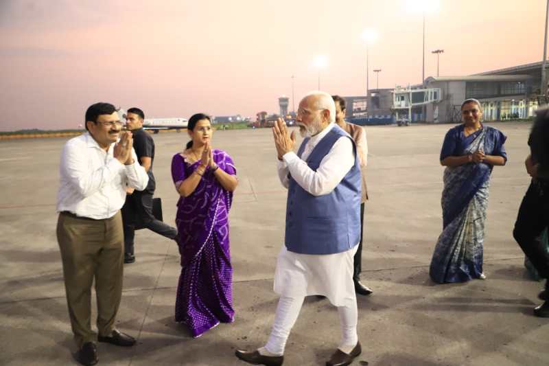 सूरत. गुजरात विधानसभा चुनाव की घोषणा से पहले गुरुवार को प्रधानमंत्री नरेंद्र मोदी से अभिवादन मुलाकात का अवसर सूरत महानगर के विधायकों को सूरत एयरपोर्ट पर मिला। इस दौरान सभी विधायकों ने प्रधानमंत्री मोदी का दिल्ली के लिए उड़ान भरने से सूरत एयरपोर्ट पर अभिवादन मुलाकात की है। प्रधानमंत्री मोदी गुरुवार को तापी जिले में सोनगढ़ के निकट गुणसदा गांव में आयोजित जनसभा को संबोधित करने आए थे। गुणसदा में कार्यक्रम सम्पन्न करने के बाद प्रधानमंत्री मोदी गुरुवार शाम को दिल्ली जाने के लिए गुणसदा गांव से सूरत एयरपोर्ट पहुंचे। यहां पर मौजूद विधायक झंखना पटेल, विवेक पटेल, संगीता पाटिल, कांति बलर, अरविंद राणा, प्रवीण घोघारी, वीडी झालावाडिय़ा आदि मौजूद थे।