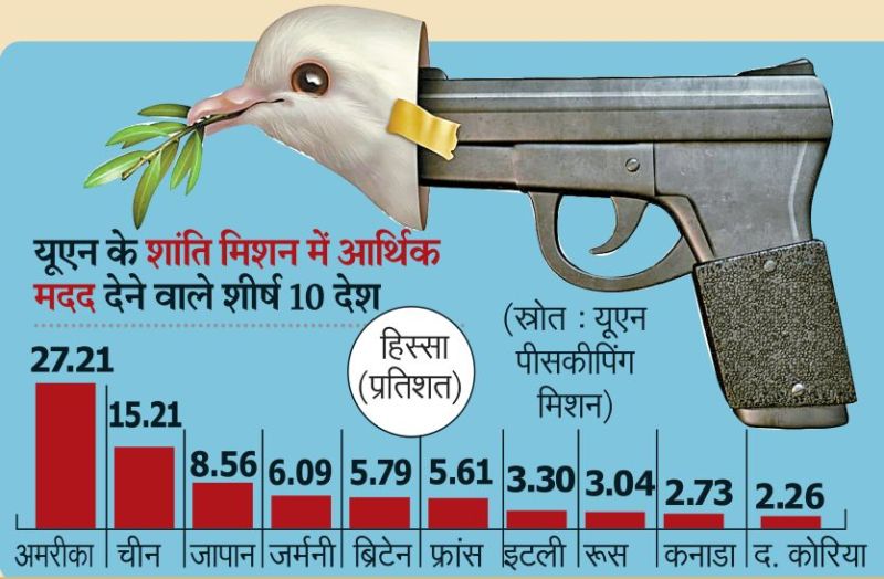 यही अमरीका यूएन के शांति मिशन में एक चौथाई से ज्यादा मदद देता है। दिलचस्प यह भी है कि अमरीका और यूनाइटेड किंंग्डम के 200 से ज्यादा सरकारी, गैरसरकारी संगठन शांति स्थापना में जुटे हैं।