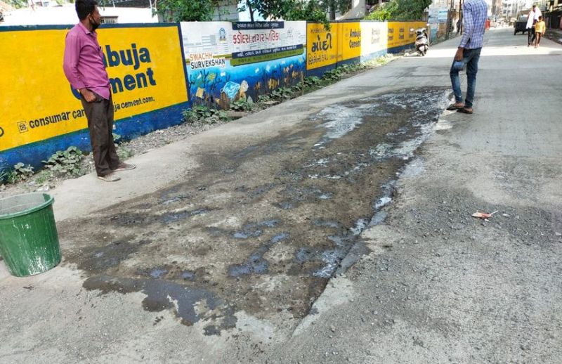 कड़ोदरा नगरपालिका के अलग-अलग क्षेत्र में विकास के काम किए जा रहे हैं। नगर के श्रीनिवास ग्रीनसिटी में बीती 23 मार्च को सीसी रोड बनाई गई थी। यह रास्ता तीन माह के भीतर ही टूट गया। अभी बारिश ने जोर भी नहीं पकड़ा है और हल्की बारिश में ही सीसी रोड के सरिए बाहर निकल आए हैं।