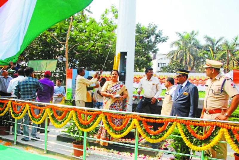 सूरत।सूरत रेलवे स्टेशन पर सौ फीट ऊंचे तिरंगे का उद्घाटन शुक्रवार को सूरत सांसद और महापौर ने स्थानीय अधिकारियों के साथ किया। नवसारी सांसद को कार्यक्रम में निमंत्रण नहीं दिया था। हालांकि बाद में रेलवे अधिकारी उन्हें बुलाने दूसरे कार्यक्रम में पहुंचे लेकिन, उन्होंने आने से मना कर दिया। कार्यक्रम पूरा होने के बाद स्टेशन आने वाले ज्यादातर यात्री तिरंगे के साथ सेल्फी लेते हुए दिखाई दिए।