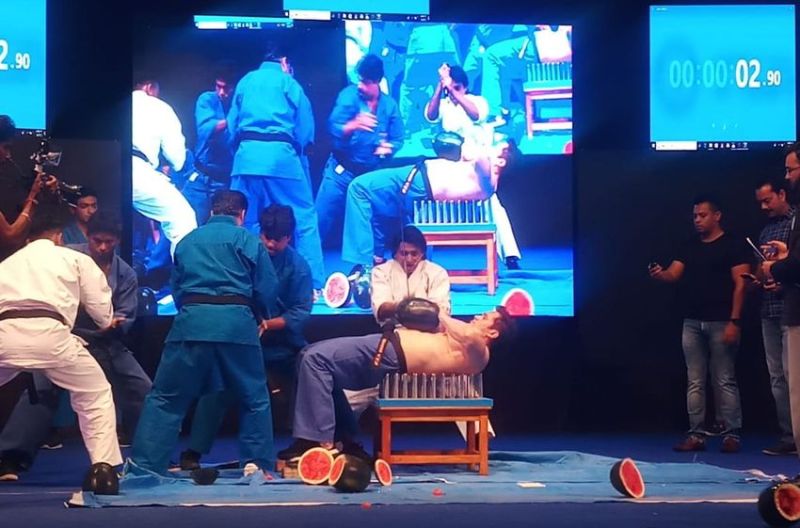 जानकारी के अनुसार नवसारी के पारसी युवक विस्पी कासद गिनीज बुक में अपने नाम चार वल्र्ड रिकार्ड बना चुके हैं। शनिवार को उन्होंने दो और विश्व रिकार्ड बनाने का प्रयास किया। टाटा हॉल में आयोजित कार्यक्रम में कराटे मास्टर विस्पी कासद व सूरत के विस्पी खराड़ी ने पहले खुले शरीर पर समुराई तलवार से एक मिनट में अमरीका के बिपिन नार्किन्स के तरबूज काटने के रिकॉर्ड को चैलेन्ज किया। इसके लिए गिनीज वल्र्ड रिकार्ड टीम के स्वप्निल दांडेकर लंदन से विशेष तौर पर मौजूद थे। उनकी मौजूदगी में नुकीली कीलों पर सोए विस्पी खराड़ी के पेट पर एक मिनट में साढ़े तीन किलो वजनी धारदार तलवार से विस्पी कासद ने एक मिनट में 37 तरबूज काटकर नया विश्व रिकार्ड कायम किया।
