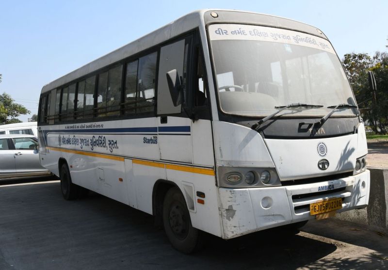 सूरत. वीर नर्मद दक्षिण गुजरात विश्वविद्यालय के विद्यार्थियों के लिए खरीदी गई बस पड़ी-पड़ी कबाड़ होती जा रही है। बस पिछले चार साल से वीएनएसजीयू परिसर में धूल खा रही है। विद्यार्थियों की सुविधा के लिए इसे सांसद निधि से खरीदा गया था। बस को लेकर विश्वविद्यालय में नियम नहीं होने के कारण यह रोड से दूर है।