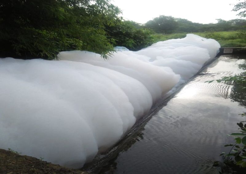 20 मीटर ऊंचाई तक केमिकल के सफेद झागउड़ते देखे जा सकते हैं