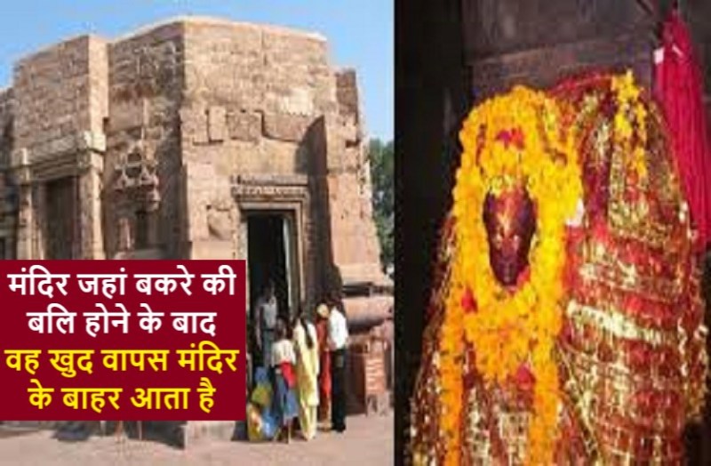 भारत में अनेक चमत्कारिक और रहस्यमयी मंदिर हैं, जहां कुछ में मांगी गई मनौती तुरंत पूरी हो जाती है तो कुछ ऐसे हैं, जो विपदा आने से पहले ही इशारा कर देते हैं। वहीं कुछ जगह सीधे ईश्वरीय शक्ति का अहसास तक होता है। लेकिन आज हम आपको देश के एक ऐसे मंदिर के बारे में बता रहे हैं, जहां बकरे की बलि तो चढ़ती है। लेकिन बकरा मरता नहीं और बलि के कुछ समय बाद पुन: जिंदा होकर खुद ही चलता हुआ मंदिर से बाहर आ जाता है।
