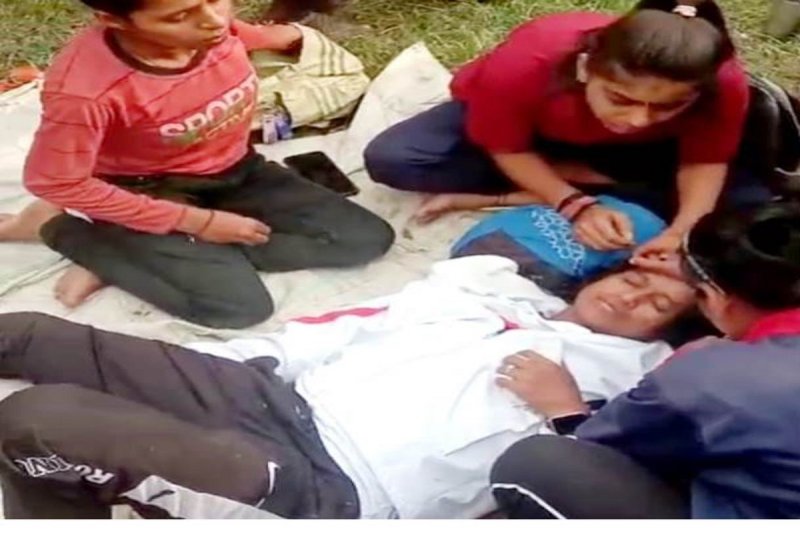 घायल खिलाड़ी छात्राएं।