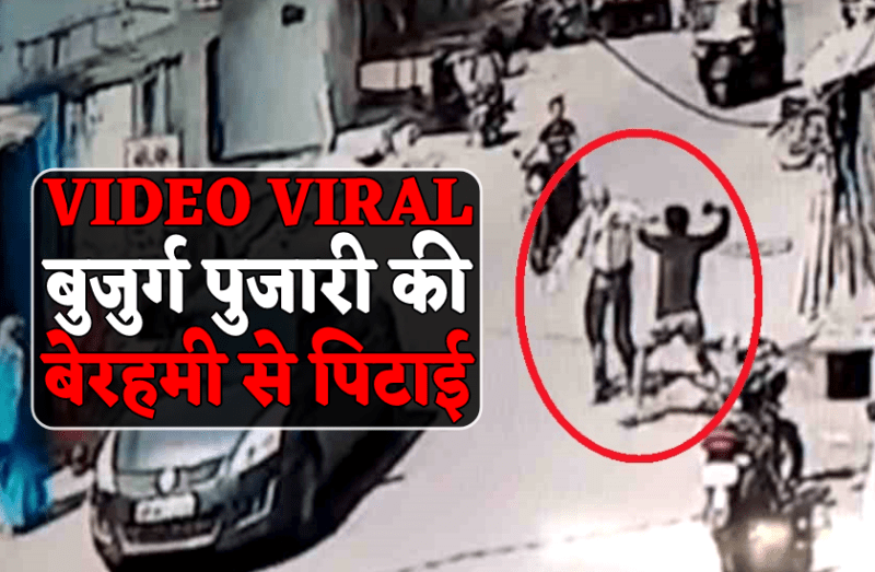 बीच सड़क पर बुजुर्ग पुजारी की पिटाई : पीछे से आए बदमाश ने दनादन बरसाए लात-घूसे और चप्पल, वीडियो वायरल