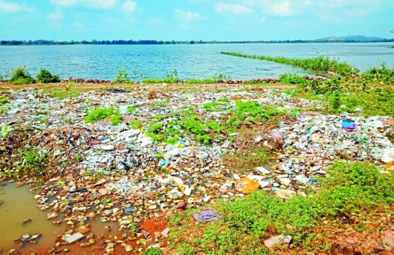तालाब में जा रहा कचरा