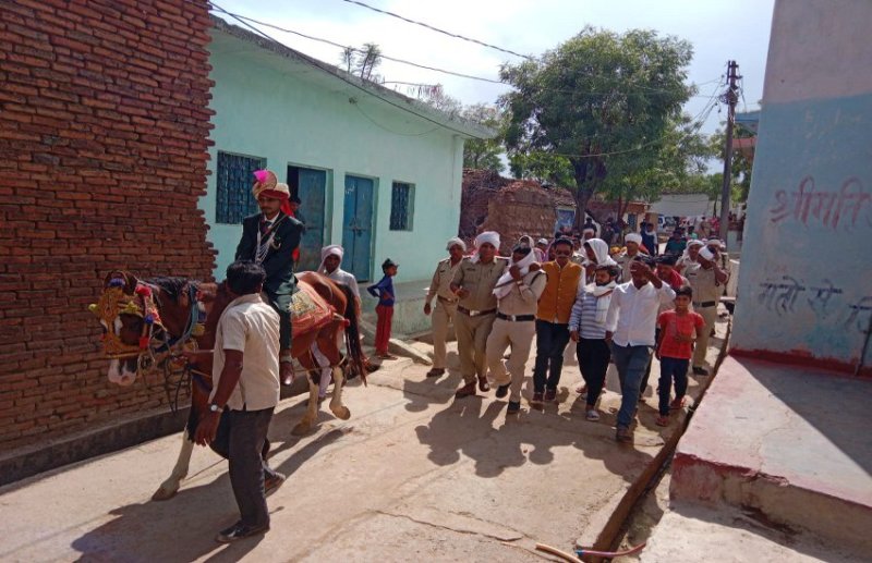 टीकमगढ़. बुंदेलखंड के ग्रामीण क्षेत्र आज भी जातिवाद की बेडिय़ों से जकड़े हुए है। आलम यह है कि कुछ गांव में आज भी SC/ST वर्ग के लोग विवाह में घोड़े पर नहीं बैठ पाते है। ऐसे में कुड़ीला थाना क्षेत्र के ग्राम मातौल में शुक्रवार को पुलिस ने अपने संरक्षण में एक दुल्हे को घोड़े पर बैठाकर उसकी राछ पूरे गांव में निकलवाई।