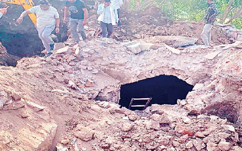 जमीन के अंदर मिले कमरे तो पुरातत्व विभाग ने मशीनें रोक दीं। मजदूरों से कराई जा रही है खुदाई।