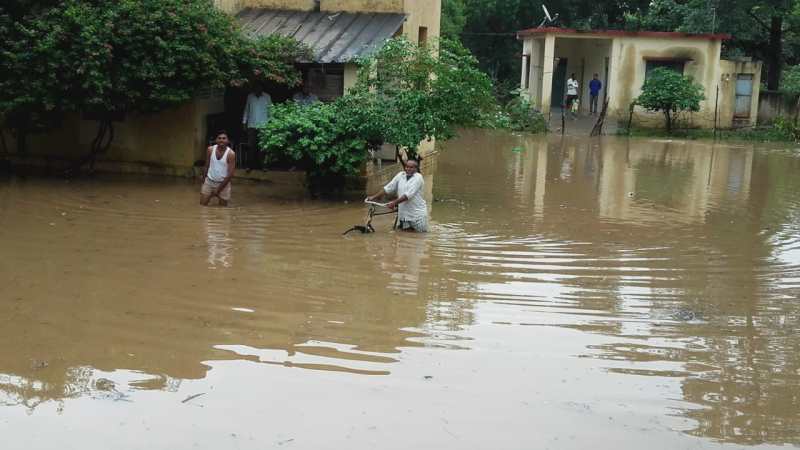टीकमगढ़.निवाड़ी क्षेत्र में देर रात हुई झमाझम बारिश से कई कार्यालयों व घरों में पानी भर गया। वहीं हाईवे पर पुलिया बंद होने से एक मकान में पानी भर जाने से हजारों रुपए का सामान खराब हो गया। परिजनों को छत से नीचे रस्सी के सहारे निकाला गया। रामगढ़ में आकाशीय बिजली गिरने से एक युवक गंभीर रूप से घायल हो गया और पड़ोस की महिला आकाशीय की बिजली की चपेट में आ गई। नीमखेरा में आकाशीय बिजली से भैंस की मौत हो गई ।