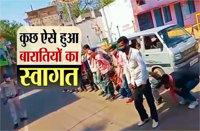 दरअसल टीमकगढ़ के जतारा कस्बे से शुक्रवार की रात बारात बल्देवगढ़ गई थी। लेकिन जब बाराती शादी में शामिल होकर जतारा पहुंचे तो पुलिस उनके स्वागत के लिए खड़ी हुई थी। पुलिस को देख बारातियों के पसीने छूट गए और पुलिस ने भी उन्हें ताउम्र याद रहने वाली सजा दी। बाराती जैसे ही घर पहुंचे तो स्वागत में खड़े पुलिसकर्मियों ने सभी को एक लाइन में खड़ाकर करीब आधे घंटे तक सभी से उठक बैठक लगवाई और ये भी बुलवाया कि अब वो कभी भी कोरोना कर्फ्यू का उल्लंघन नहीं करेंगे।
