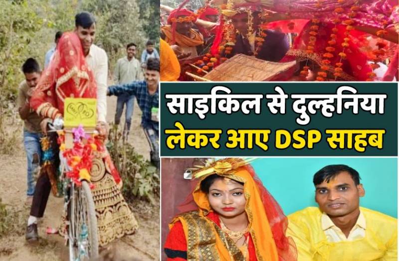 टीकमगढ़. एक तरफ जहां आजकल महंगी शादियों का चलन है वहीं दूसरी तरफ मध्यप्रदेश के एक अफसर ने सादगी से शादी कर मिसाल पेश की है। निवाड़ी जिले के पृथ्वीपुर के डीएसपी संतोष पटेल बेहद ही सादे तरीके से हिंदू रीति-रिवाजों और संस्कृति व संस्कारों के अनुरूप शादी की। डीएसपी संतोष पटेल बड़े ओहदे पर होने के बावजूद आधुनिकता को छोड़ देसी अंदाज में परिणय बंधन में बंधे और साइकिल से अपनी दुल्हनिया को विदा कर घर लाए। डीएसपी की इस पहल की हर तरफ तारीफ हो रही है।