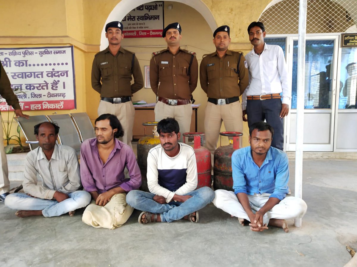 टीकमगढ़.सिलेण्डर चोरी की घटना की शिकायत के महज 4 घंटे के भीतर पुलिस ने आरोपी को पकडऩे के साथ ही चारों सिलेण्डर जब्त कर लिए है। पुलिस ने उन लोगों को भी गिरफ्तार कर लिया है, जिन्होंने चोरी के यह सिलेण्डर खरीदे थे। बीती रात ईदगाह के पास स्थित एक गैस गोदाम से चार सिलेण्डर चोरी किए गए थे। सुबह से जब गोदाम के कर्मचारी यहां पहुंचे तो इसकी जानकारी हुई। इसके बाद कर्मचारियों ने पूरे सिलेण्डरों का मिलान किया तो यहां पर चार सिलेण्डर कम पाए गए। चार सिलेण्डर चोरी की की सूचना गोलू रैकवार ने कोतवाली पुलिस से की। पुलिस ने इस मामले में अज्ञात चोरों के खिलाफ 45 एवं 380 का मामला दर्ज कर लिया था। वहीं शहर के बीच से सिलेण्डर चोरी होन की जानकारी होने पर कोतवाली थाना प्रभारी अनिल मोर्य ने तत्काल ही एसआईअनफासुल हसन, आरक्षक अजीम, रामकिशन, देशराज एवं खडग सिह की टीम गठित कर चोरी की जानकारी करने के निर्देश दिए।