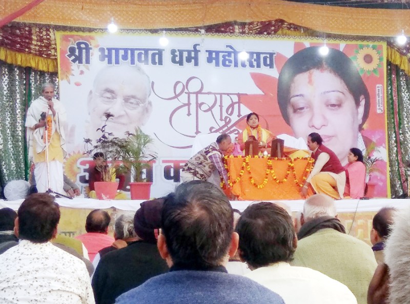 स्थानीय मानस मंच राजेन्द्र पार्क में श्रीभागवत धर्म महोत्सव का आयोजन किया जा रहा है। इस आयोजन के दौरान संत दीदी मां मंदाकिनी किंकर ने श्रीराम अमृत कथा में रविवार को मैनाक पर्वत पर वृहद व्याख्या की। कल के इसी प्रसंग को आगे बढ़ाते हुए दीदी मां ने कहा कि हनुमानजी सीता रूपी शांति की खोज में जब लंका की ओर प्रस्थान कर रहे थे। तब उनका समुद्री मार्ग में तीन शक्ति रूपी नारियों से अलग-अलग रूप में सामना हुआ और हनुमानजी महाराज का व्यवहार भी तीनों जगह अलग-अलग रहा। प्रथम सुरसा नाम की सर्पो की मां से सामना हुआ तो सुरसा ने कहा कि मैं बहुत दिनों से भूखी हूं। आज मुझे आहार मिलेगा। तब हनुमानजी ने कहा कि प्रथम मुझे अपने लक्ष्य की प्राप्ति एवं स्वामी के काम को पूरा करना है। इसके बाद मैं स्वयं ही तुम्हारी भूख बुझाने के लिए उपस्थित हो जाउंगा। इस पर सुरसा ने क्रोधित होकर बड़ा रूप धारण किया। तब हनुमानजी ने उससे दुगुना रूप धारण कर लिया किन्तु जब सुरसा ने सौयोजन का मुख बना लिया तब हनुमानजी ने अति सूक्ष्म रूप धारण किया। दीदी मां ने इस सूक्ष्म रूप की व्याख्या करते हुए बताया कि हनुमानजी चाहते तो दो सौयोजन का रूप धारण कर सकते थे। लेकिन वह अपने लक्ष्य की पूर्ति में सफल न हो पाते।