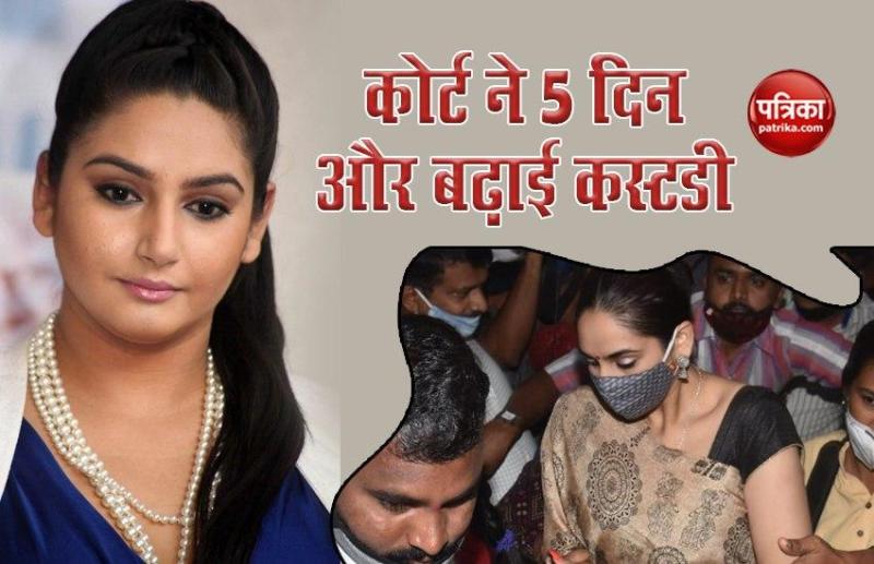 नई दिल्ली। सैंडलवुड ड्रग्स मामले में गिरफ्तार हुई कन्नड़ एक्ट्रेस रागिनी द्विवेदी की परेशानियां कम नहीं बल्कि और बढ़ती हुई नज़र आ रही हैं। 4 सितंबर को अभिनेत्री को ड्रग्स रैकेट के साथ कनेक्शन के चलते गिरफ्तार कर लिया गया था। वहीं अब सोमवार को बैंगलुरु कोर्ट ने इस मामले में रागिनी की कस्टडी को 5 दिनों के लिए और बढ़ा है। यही नहीं रागिनी समेत गिरफ्तार हुए और लोगों की भी कस्टडी को बढ़ा दिया गया है।