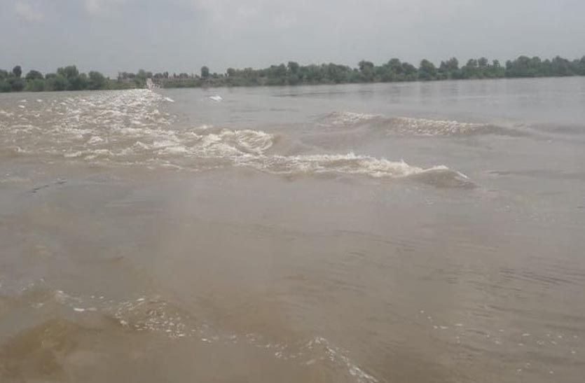 टोडारायसिंह क्षेत्र के चूली-पालडा रपट पर पूरी वेग से बहती बनास नदी।