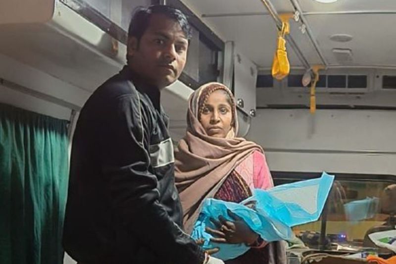 टोडारायसिंह. एम्बुलेंस में प्रसव बाद बच्ची के साथ परिजन।