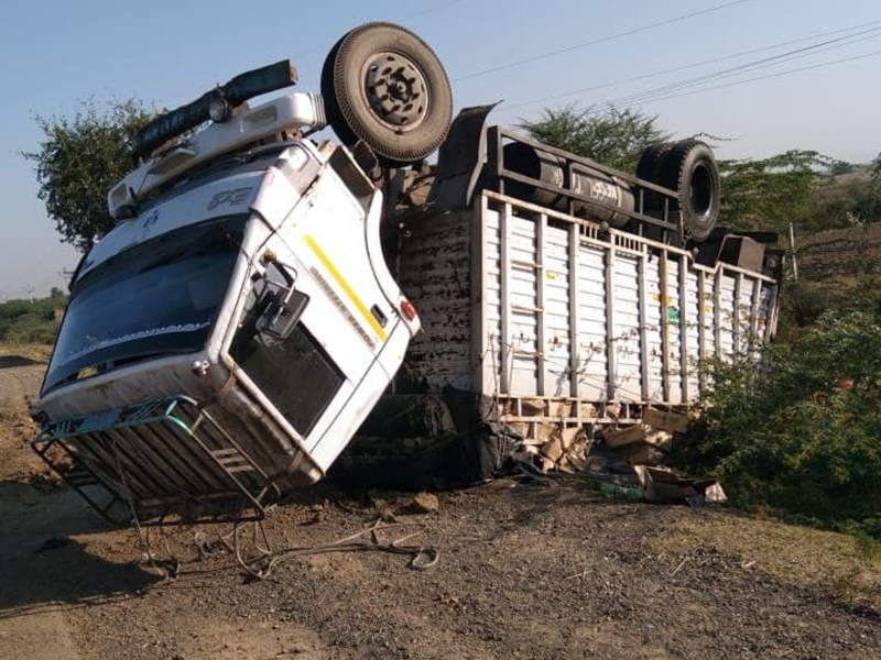 बहरोड़ से कोटा जा रहा शराब के पव्वों से भरा ट्रक पलटा
