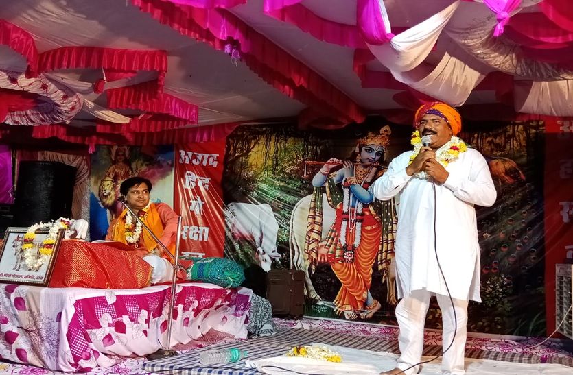 टोंक के पास स्थित छान गांव में आजाद हिन्द गोशाला की ओर से आयोजित नानी बाई रो मायरा कार्यक्रम में सम्बोधित करते अतिथि।
