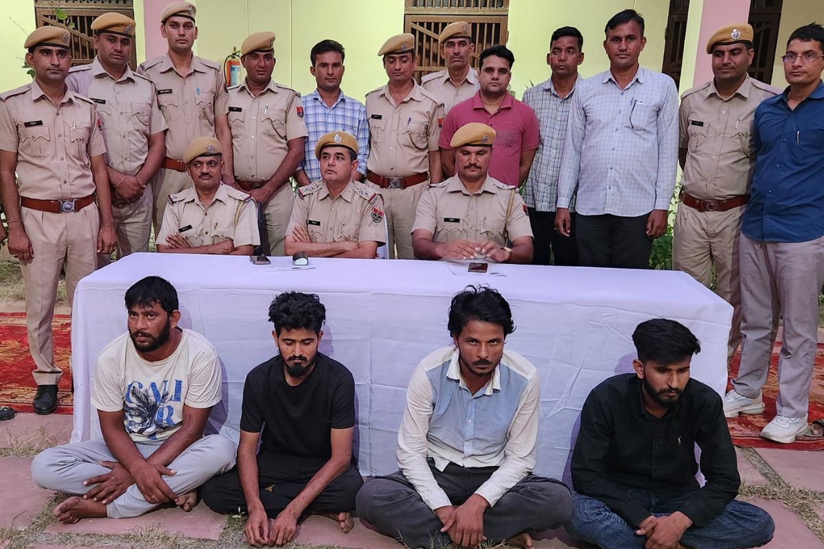 पुलिस अधीक्षक राजेश कुमार मीणा ने बताया कि अतिरिक्त पुलिस अधीक्षक मोटाराम बेनीवाल, उपाधीक्षक आशीष कुमार प्रजापत एवं थाना प्रभारी चेनाराम बेडा के निर्देशन में गठित टीम ने गत 14 अगस्त रात को 12 लाख 77 हजार रुपए से भरे एटीएम को उखाड़ कर ले जाने के मामले में अंतर राज्य एटीएम चोर गैंग के गौरव दोरिया पुत्र बाबूलाल जागा निवासी रेनी जिला अलवर हाल गोपी नगर विजयपुर मीणा पारली जयपुर, महेंद्र मीणा पुत्र राम खिलाड़ी निवासी मुकुंदपुरा अलवर हाल जगतपुरा जयपुर, सोनू सिंह पुत्र विजय सिंह निवासी शिवाजी पार्क खरवास कच्ची बस्ती अलवर एवं शिवम पुत्र गिरिराज सिंह निवासी गुढा कटला थाना बसवा जिला दौसा हाल प्रताप नगर जयपुर को गिरफ्तार किया है।