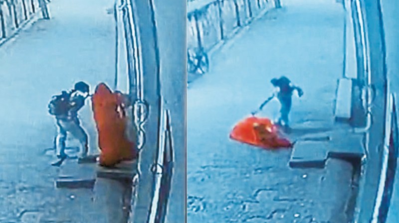 दिन दहाड़े मंदिर जाती महिला से चेन लूटने का प्रयास, सीसीटीवी कैमरे में कैद हुई वारदात