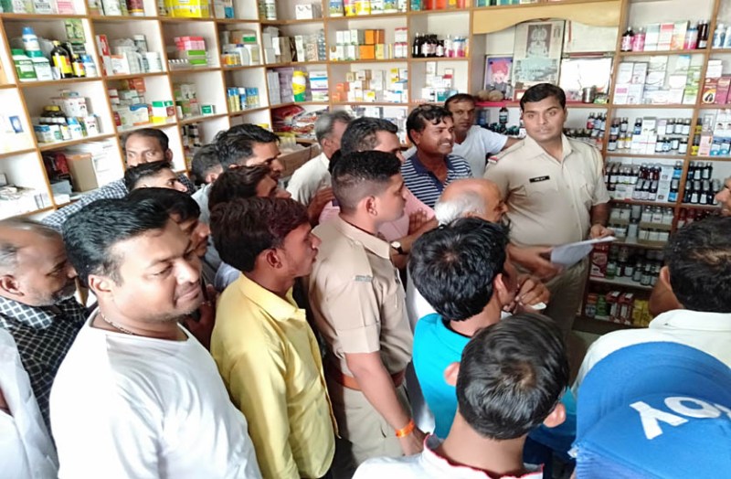 इसके बाद व्यापार मंडल Trade division के लोगों ने पुलिस चौकी के बाहर एकत्रित होकर प्रदर्शन करते हुए एसपी के नाम थानाप्रभारी राजेश कुमार को लिखित ज्ञापन सौपा।