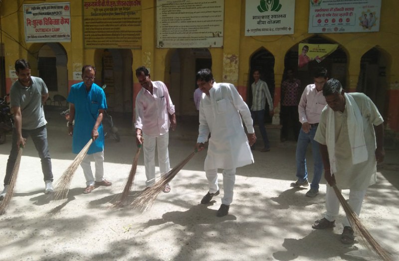 टोडारायसिंह. नगरपालिका की ओर से स्वच्छता अभियान के तहत बुधवार को सामुदायिक स्वास्थ्य केन्द्र परिसर में सफाई कार्य किया गया। नगरपालिकाध्यक्ष संतकुमार जैन ने अभियान की शुरूआत की। उन्होंने कार्मिकों को स्वच्छता के प्रति प्रेरित किया। इस दौरान चिकित्सा प्रभारी डॉ. जे. पी. गुप्ता, सेवा भारती समिति के जिला उपाध्यक्ष शिवराज कुर्मी, भाजपा के प्रहलाद चावला, करूनानिधि शर्मा, पवन पाण्डे समेत अन्य चिकित्सा विभाग के कार्मिकों ने चिकित्सालय परिसर मेें सफाई कार्य किया। इसके बाद मरीजों व अन्य लोगों को स्वच्छता के प्रति जागरूक किया गया।