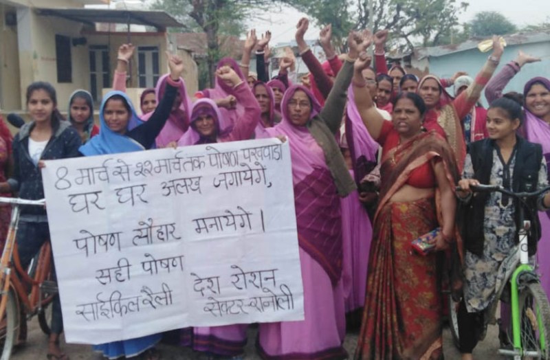 पर्यवेक्षक मधु बैरवा ने बताया कि आंगनबाड़ी कार्यकर्ताओं ने बैनर पोस्टर के माध्यम से ग्रामीण महिलाओं को इस अभियान की जानकारी दी तथा बताया कि कुपोषण को पोलियो की तरह जड़ से खत्म करने के लिए 72 खानपान जरूरी है।