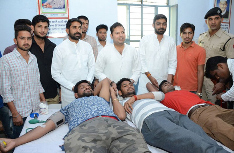 मालपुरा टोडा मालपुरा सेवा संस्थान की ओर से आयोजित शिविर में रक्तदान करते रक्तदाता।