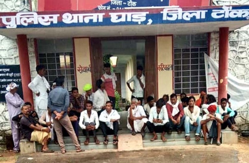 मारपीट के विरोध में ग्रामीणों ने घाड़ थाने पर किया प्रदर्शन
