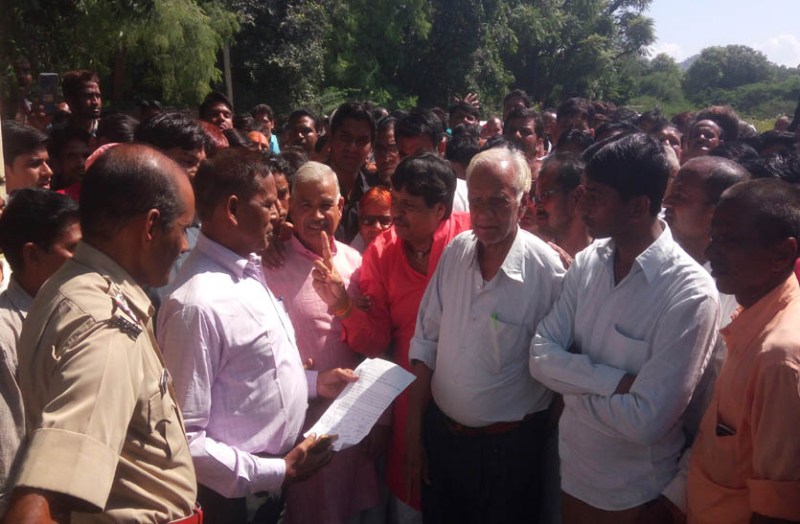 साथ ही समुदाय विशेष के आपराधिक प्रवृति के युवकों को गिरफ्तार करने तथा दोषी अधिकारियों के खिलाफ अनुशासनात्मक कार्रवाई की मांग की। भाजपा शहर अध्यक्ष संतकुमार जैन व तुलसीदास शर्मा की अगुवाई में ज्ञापन में बताया कि मालपुरा में दशहरा पर्व पर रावण दहन करने से पूर्व शांति पूर्वक राम दरबार जुलुस पर निकाला जा रहा था, इसी बीच मौहल्ला सहादत में समुदाय विशेष के कुछ युवको के पथराव करने से जुलुस में अफरा तफरी मच गई। इधर, तनाव पूर्ण स्थिति के बीच प्रशासन की लापरवाही के चलते बिगड़े माहौल में कफ्र्यू लगा दिया।