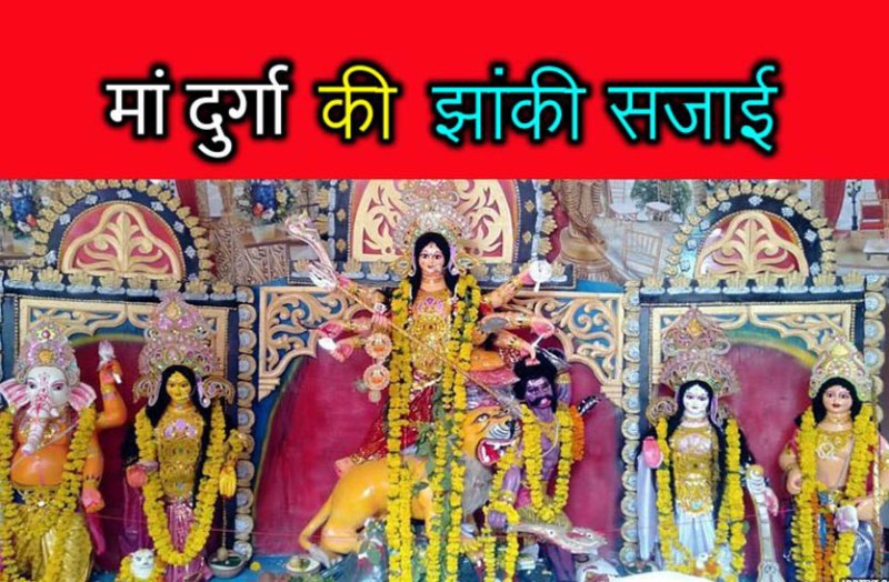 मां दुर्गा की झांकी सजाई, दर्शनों के लिए श्रद्धालुओं का लगा रहा तांता