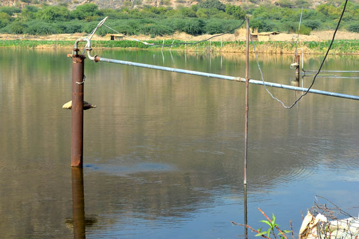 राजमहल के समीप बनास नदी में लगे ट्यूबवैल।