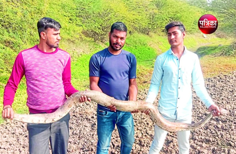 बच्चों को देख स्कूल की ओर दौड़ा आठ फीट लंबा अजगर, ग्रामीणों ने पकडकऱ बीसलपुर वन क्षेत्र में छोड़ा
