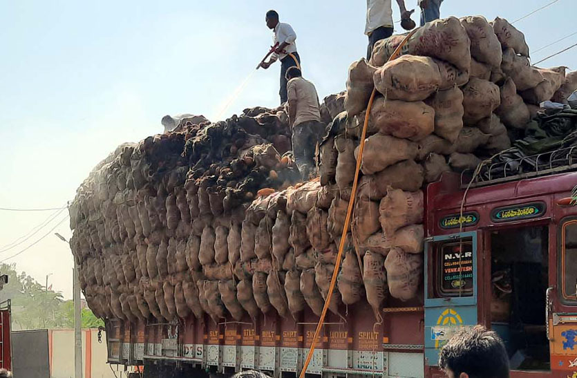 बिजली के तारों को छूने से नारियल की बोरियों से भरे ट्रक में लगी आग