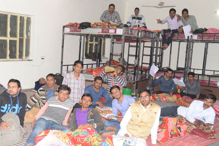 टोंक स्थित अग्निशमन केन्द्र के रैन बसेरे में आराम करते परीक्षार्थी।