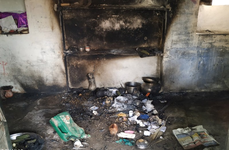 चाय बनाते समय सिलेण्डर भभकने से लगी आग, घरेलु सामान व विद्युत उपकरण जलकर हुए राख