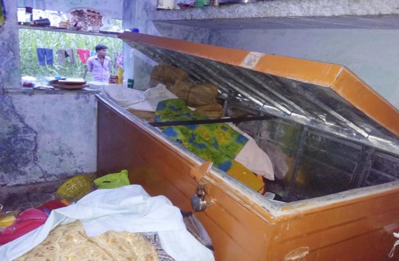 निवाई के सिरोही में चोरी की वारदात के बाद कमरे में बिखरा सामान।