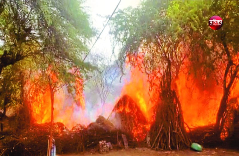 मौका रिपोर्ट मुताबिक बाबूलाल गुर्जर के बाड़े में रखी 20 ट्रॉली ज्वारा, 200 सिचांई पाइप, चारा मशीन, इंजन, पम्प सेट, लकडिय़ां, नानू लाल गुर्जर के बाड़े में रखा 30 ट्रॉली ज्वारा चारा, 280 सिचांई पाइप, चारा मशीन, टयुबवैल मोटर, विद्युत केबल व पाइप, 4 ट्रॉली चारा, नन्दलाल माली के बाड़े में रखा 2 ट्रॉली चारा, नवरतन माली का 9 ट्रॉली चारा, दिनेश माली का 8 ट्रॉली चारा, हरलाल माली का 5 ट्रॉली चारा, ज्वारा माली का ईंधन व किशनलाल जाट का एक ट्रॉली चारा व ईंधन आदि जला है।