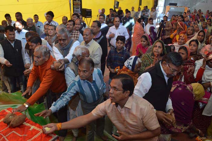 आचार्य सुकुमालनन्दी के 14 वें आचार्य पदारोहण दिवस मनाने के लिए समाज ने श्रीफल भेंट किया।